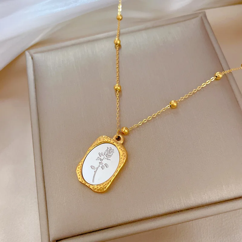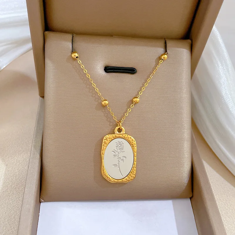 שרשרת קלאביקול קצרה עם תליון רוז בעיצוב נישתי, מסגרת מרובעת לנשים